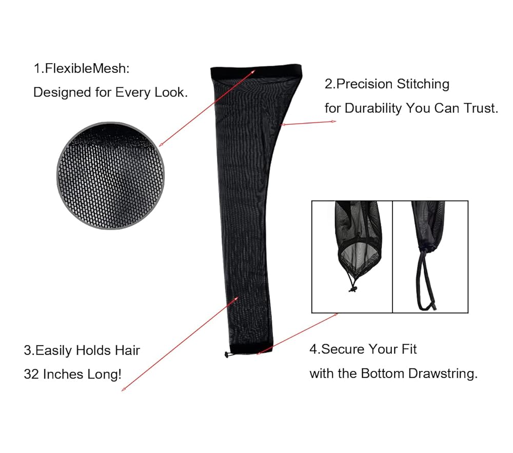 ✅【Easy to Wear】 Place hair ends into the opening, face the drawstring, and roll up to cover the head. The hairweave sleeve for locs with drawstring makes adjusting effortless.