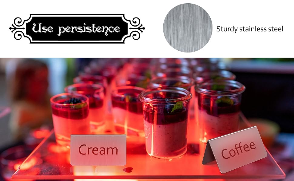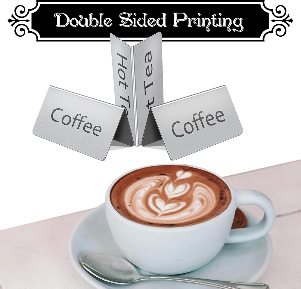 【Double Sided Printing】Our stainless steel coffee labels are specially double-sided printed to provide guests with a better and more pleasant experience, ensuring your party or buffet receives unanimous approval from friends and family
