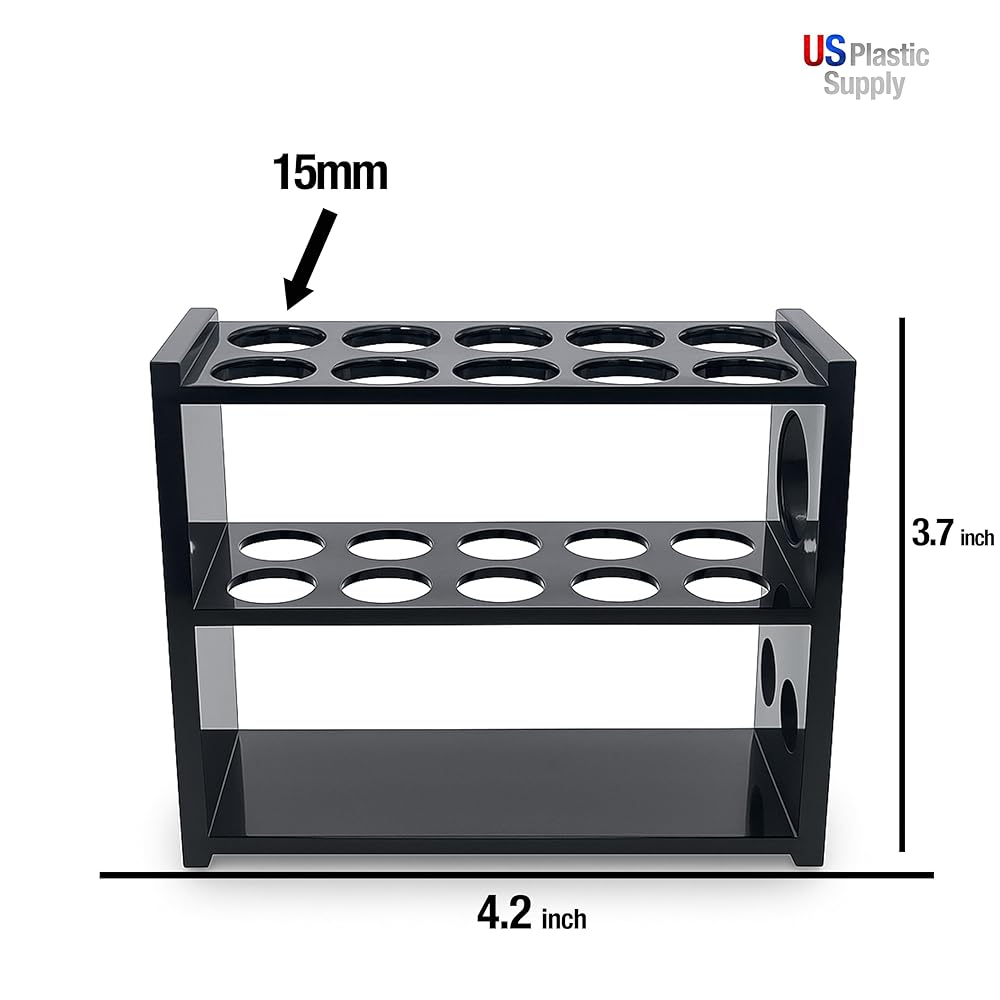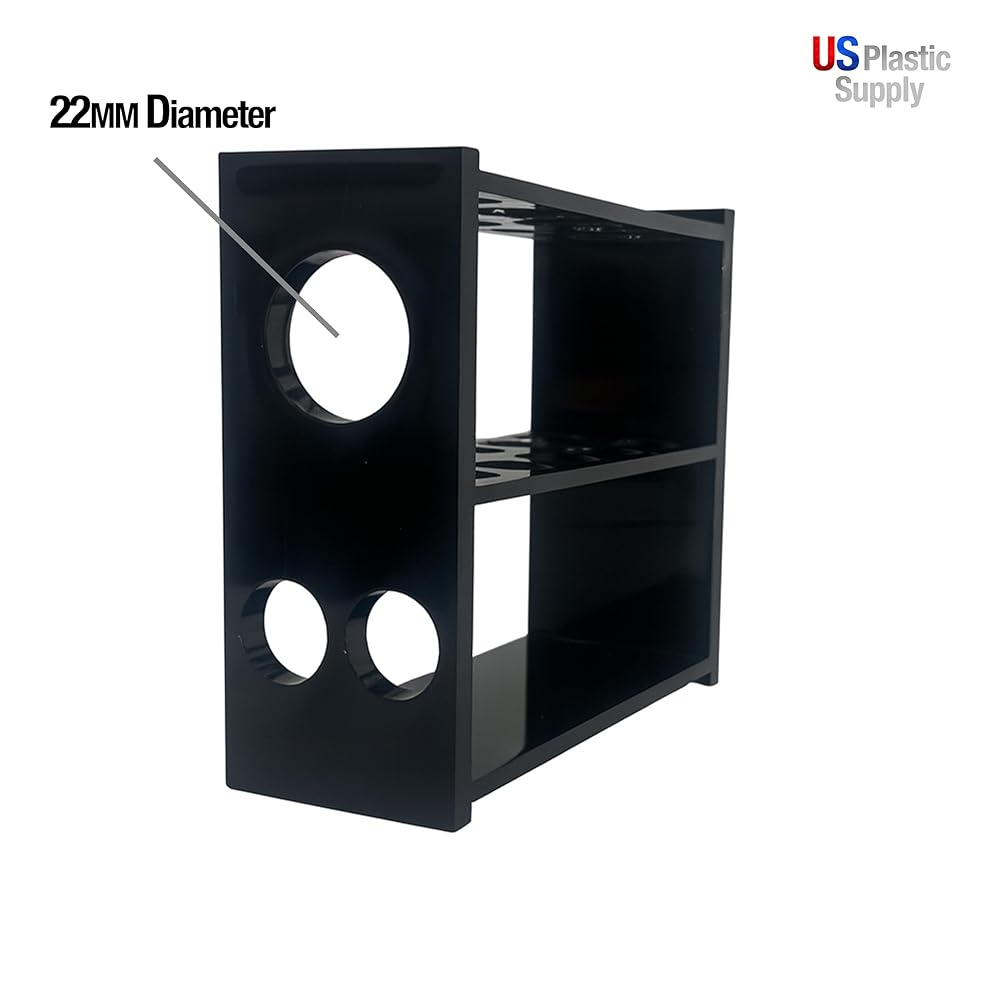 Stay organized and efficient with US Plastic Supply Black Acrylic Test Tube Rack – a durable, stylish, and versatile stand designed for both small and large tubes. Crafted from high-quality acrylic, this rack features a 12-hole flippable design that adapts to your needs. One side fits standard 10 ml, while the other accommodates larger tubes up to 22 mm in diameter – giving you unmatched flexibility in a single rack. Perfect for laboratories, classrooms, salons, essential oil storage, or creative DIY projects, this dual-sided stand provides the reliability and modern look you need. The sleek black finish makes it both professional and easy to clean, while the compact design keeps your workspace clutter-free. Whether you're performing lab experiments, demonstrations, or product storage, this test tube holder is built to last and designed to impress.