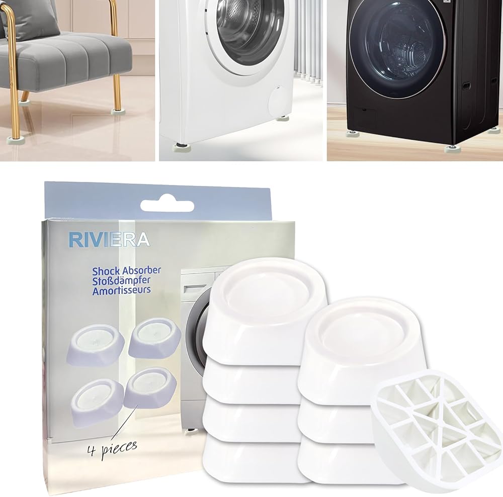 The RIVIERA Antivibration Pads are mainly for washing machine shock, offering 50% more contact with your floor versus similar pads. The Vibration dampening reduces the noise caused by a non-stable washer or dryer. Doing laundry will become a quiet and pleasant task.
