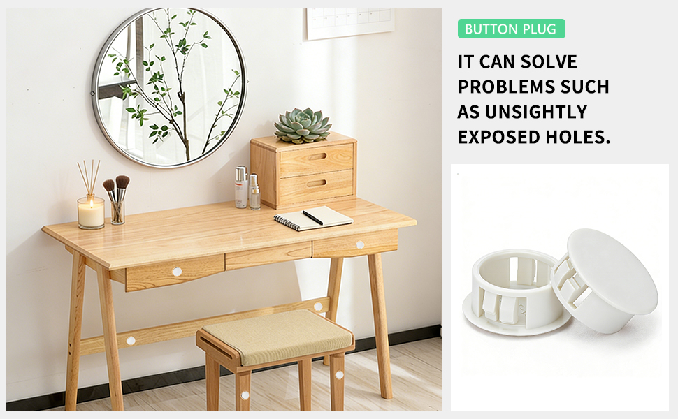 Aesthetically Pleasing and Practical: plastic caps has excellent sealing, cushioning, and shock absorption properties. It can fill, cover, and decorate screw holes and drill holes in furniture, keeping the panel flat and making the furniture more aesthetically pleasing.