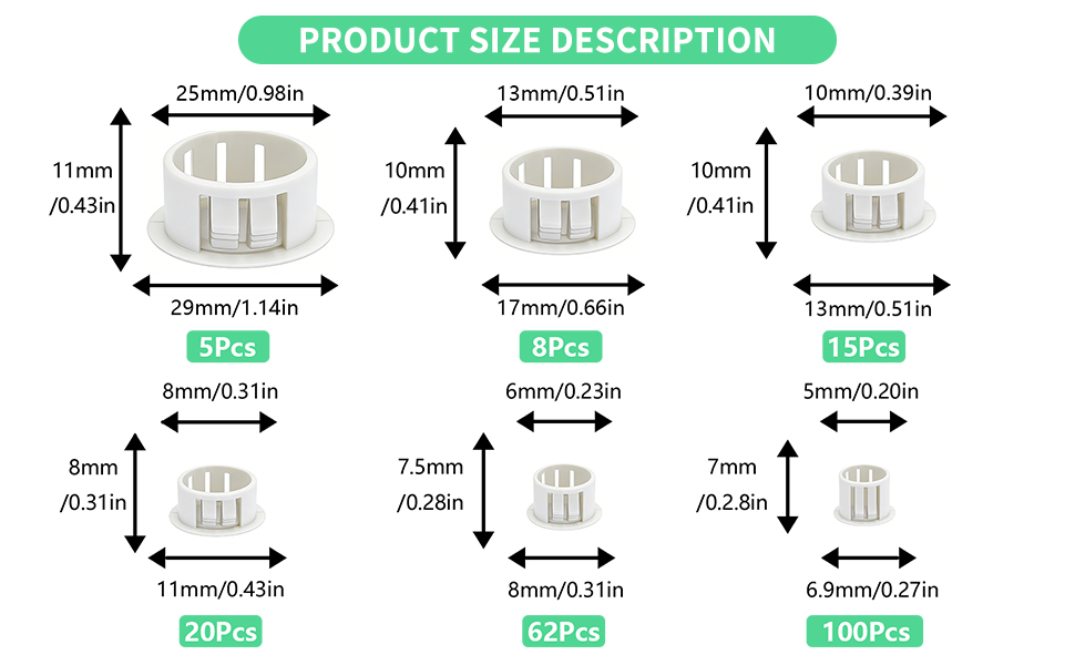Easy to Install and Use: Tool-free installation is simple. Just select the white screw caps according to the hole size and press it into the hole to complete the installation. The snap-on design ensures a stable and secure hold after pressing, preventing it from easily falling off.