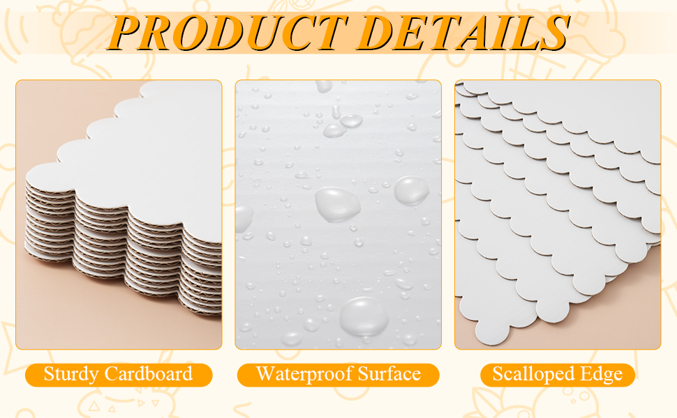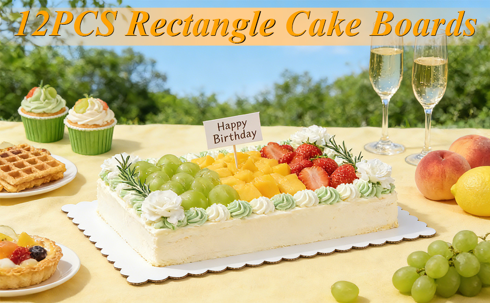 Sleek Presentation: The rectangle cake cardboard features a glossy white finish on the top and scalloped edges that makes your cakes truly pop and enhances the appeal of your desserts — perfect for impressing guests and helping your creations stand out.