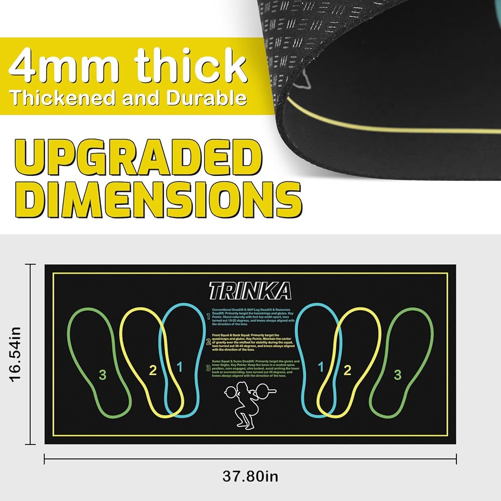 Non-Slip Squat Mat with Foot Position, 37.8'' X 16.54'' Large Squat Support Pad, 4mm Thickness Foot Placement Assist Exercise Mat for Squats, Home Gym, Leg and Abdominal Workouts