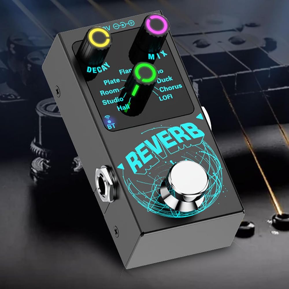 🎸【9 Professional Reverb Types for Rich Tone Space】This guitar reverb pedal features 9 professionally tuned reverb modes, including classic Hall, Room, Plate, Spring and creative modern Modulated, Reverse effects. It easily delivers warm natural space or exaggerated ambience, with professional optimization for low noise and high resolution. Perfect for live shows, recording and daily practice, it adds more layers and expressiveness to your guitar tone.