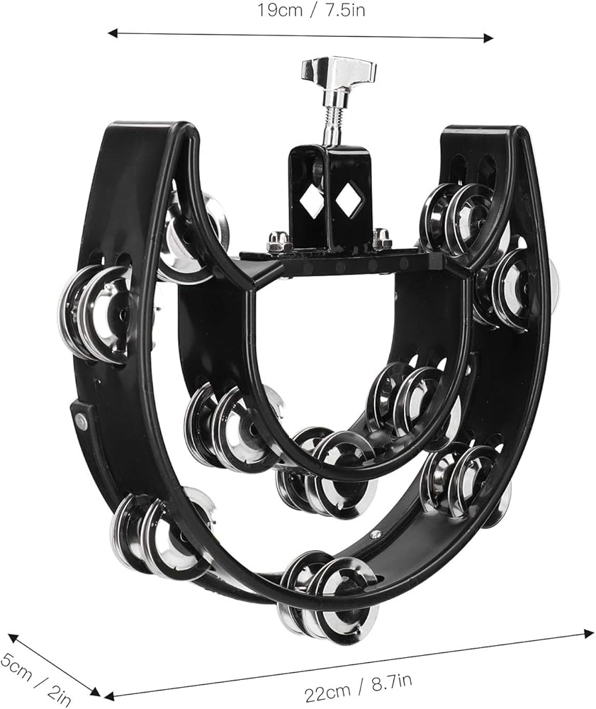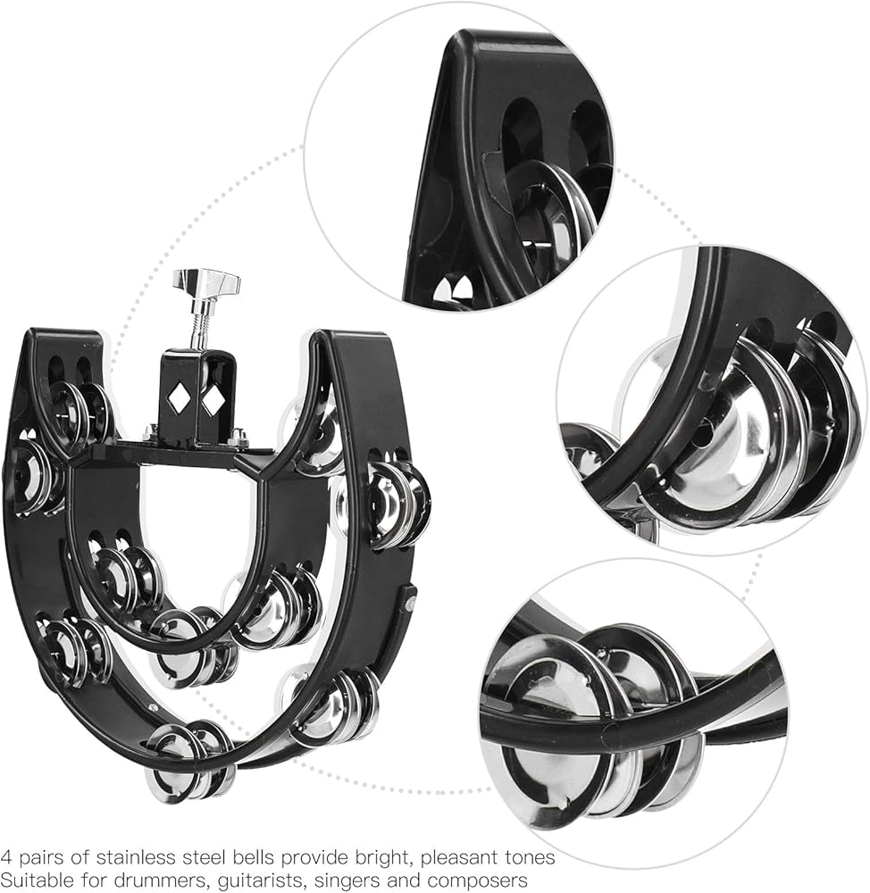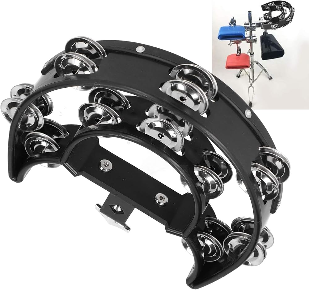 Hi Hat Tambourine Drum Set, Double Row Bells Musical Instrument for Drummers Guitarists Singers Composers, Multifunctional Hand Bell Rattle Loose,Black
