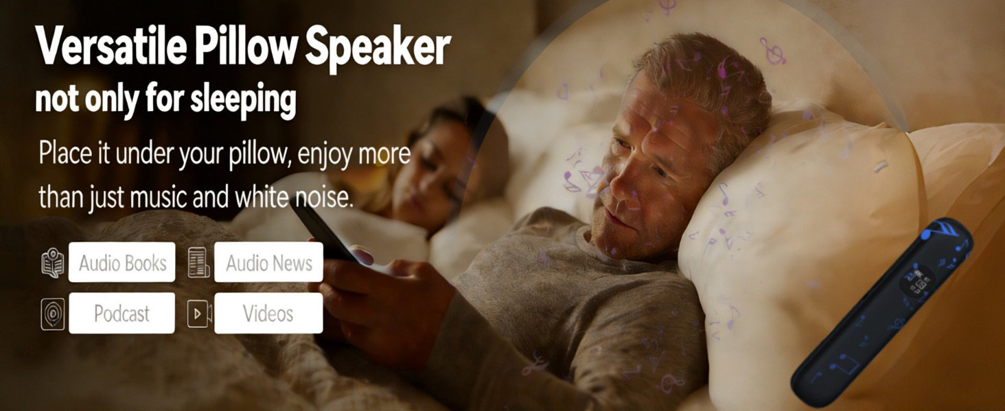 🛏️【Ultra-Thin Design – Fits Any Pillow】At just 0.4 inches thin, this under the pillow speaker slides easily under any pillow without discomfort. Use it at home, travel with it as a portable sleep speaker, or even as a pillow soeaker (common misspelling) for kids' bedtime stories. Whether you search for pillow speaker, bone conduction pillow, or pillow bone conduction speaker, this device delivers premium quality in a compact form.