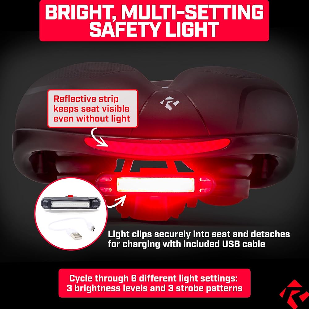 ✅ Wide Memory Foam Bike Seat for Comfort – High-density memory foam padding provides supportive cushioning and helps reduce pressure on sit bones for more comfortable longer rides.