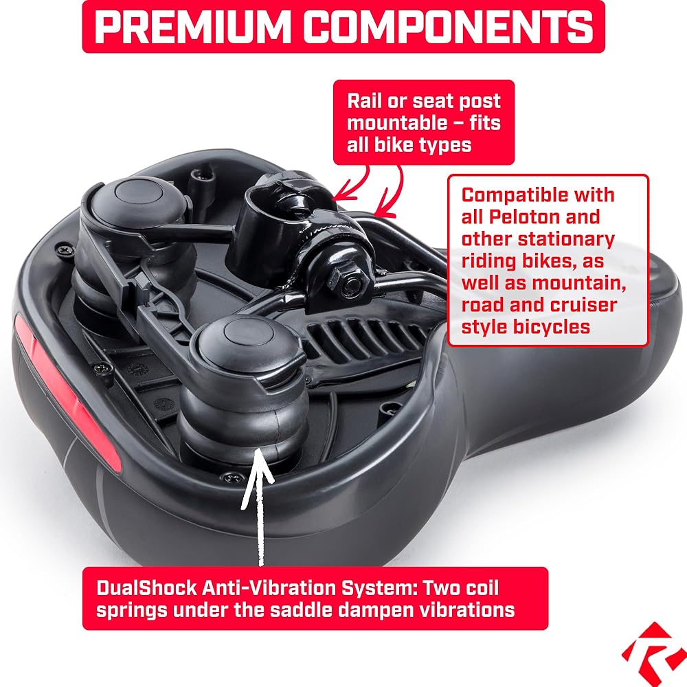 ✅ Shock-Absorbing Dual Spring Suspension – Dual suspension springs help reduce vibration and impact from bumps, providing a smoother and more stable ride on roads, trails, or stationary bikes.