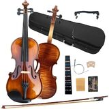 【Comprehensive Set】This 4/4 full-size violin set is perfect for adult students, beginners, and those looking to learn the fiddle. It comes with everything you need to get playing, including a solid wood acoustic violin, a hard case, a shoulder rest, a brazilwood bow, a tuner, and extra strings.
