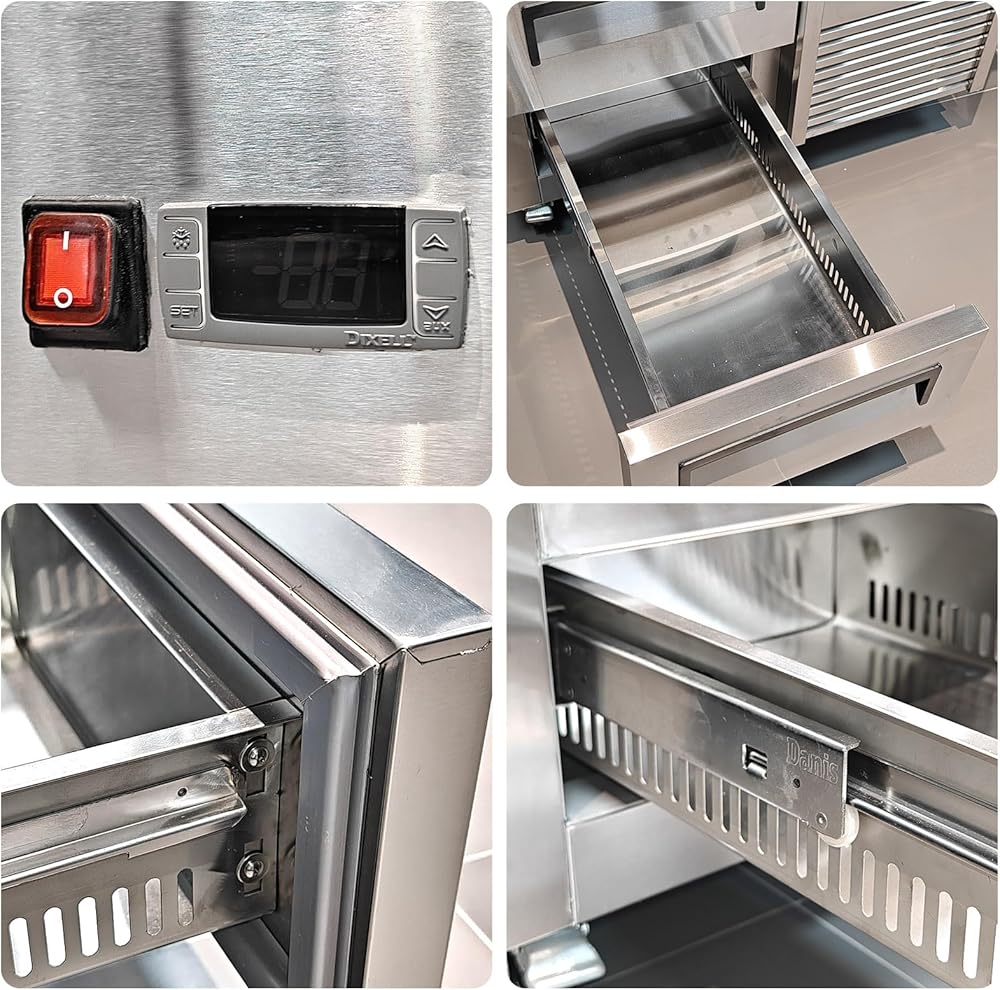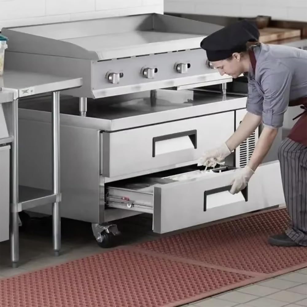 [ Easy Maintenance, Durability & Prime Function ] Kolice chef-base refrigerator constructed from durable food-grade stainless steel, the Commercial 2 Drawers Refrigerated Chef Base is corrosion-resistant and easy to clean. Its commercial compressor offers a high-efficiency energy savings and operates quietly, making it capable of withstanding high-capacity commercial usage.