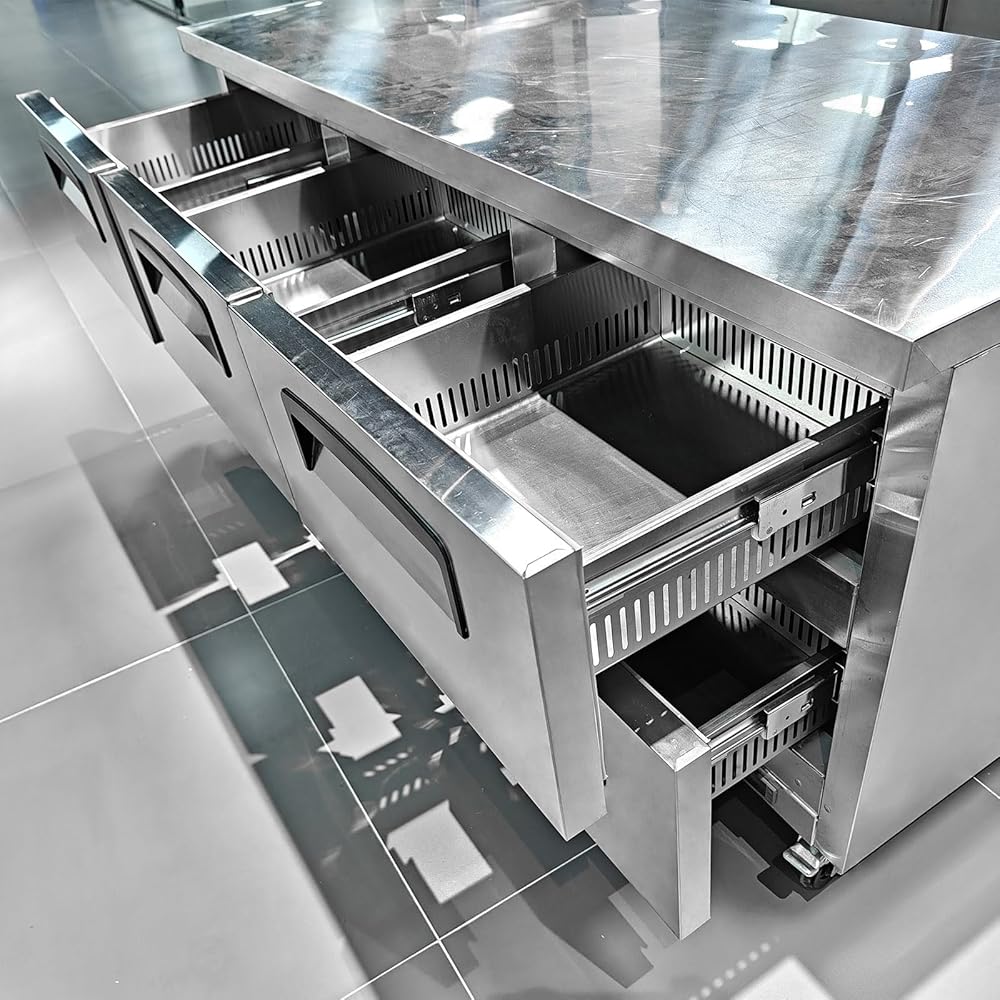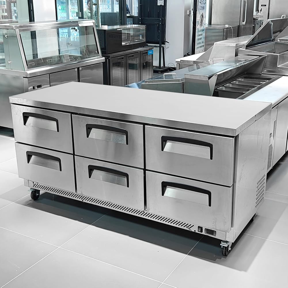 [ Easy Maintenance, Durability & Prime Function ] Kolice under counter freezer constructed from durable food-grade stainless steel, the Commercial 6 Drawers Refrigerated Chef Base is corrosion-resistant and easy to clean. Its commercial compressor offers a high-efficiency energy savings and operates quietly, making it capable of withstanding high-capacity commercial usage.