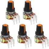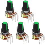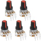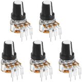 Rotary Potentiometer; Material: Metal; Color: Black White; Resistance Value: 100K Ohm; Resistance Tolerance: ±20%; Type: Single Linear (Type B); Overall Size: 30 x 25 mm / 1.18 x 0.98 inch(LxW); Shaft Size: 15 x 6 mm / 0.59 x 0.24 inch(LxDia); Knob Size: 17 x 14.5 mm / 0.67 x 0.57 inch(HxDia); In the package of: 5Pcs Potentiometers, 5Pcs Knob Caps, 5Pcs Washers, 5Pcs Nuts.