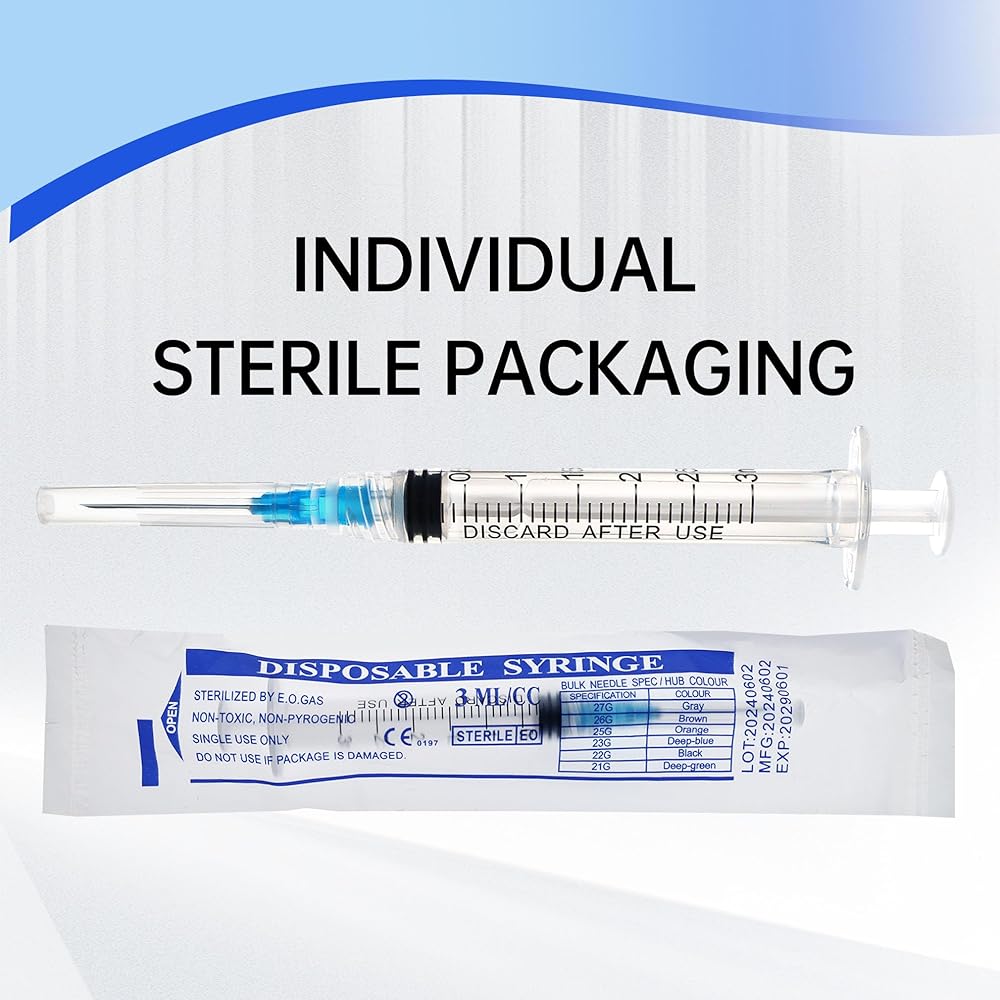 STERILE & INDIVIDUALLY WRAPPED FOR LAB SAFETY: Each 23G 1 inch syringe with needle is rigorously sterilized and sealed in its own protective wrapper. WARNING: Designed exclusively for laboratory research, scientific experiments, and industrial precision fluid handling