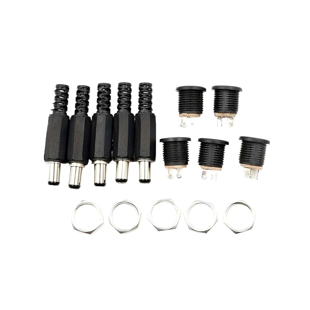 fengpeng Durable 10Pcs DC Power Plug Male Female Jack Socket Nut Panel Mount Connectors Set 5.5x2.1mm 3.5x1.3mm 2.1 .5mm Connector