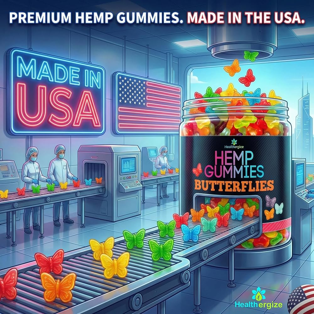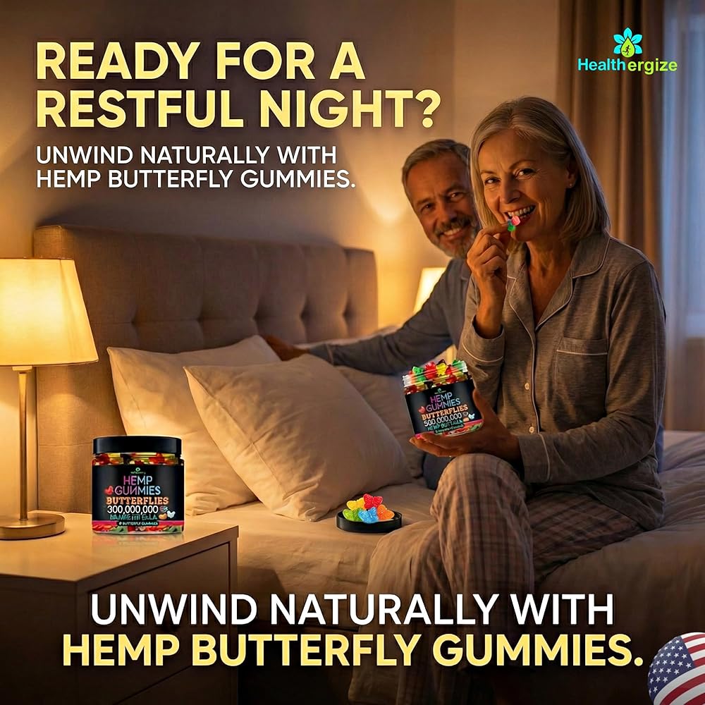 Delicious Hempseed oil gummy candy for full deep calm and sleep. Enjoy full flavor of butterfly shape gummy bears. Made in USA from natural hempseed oil, full nutrients.