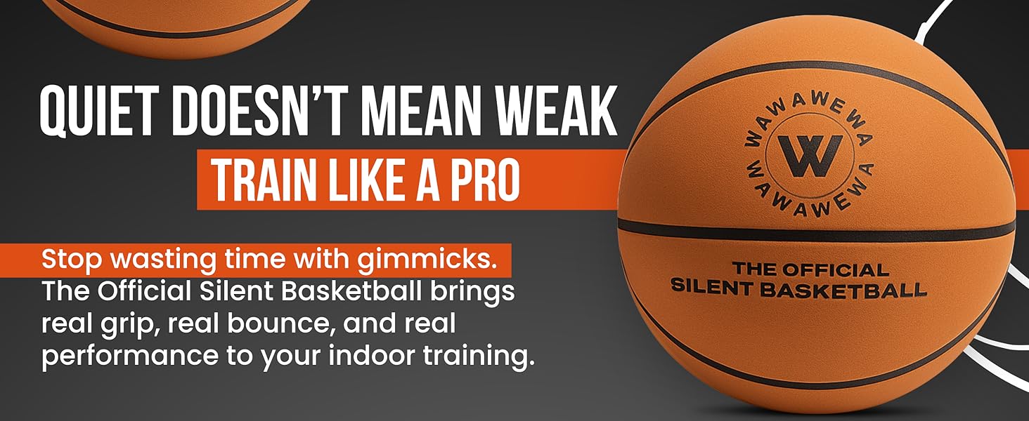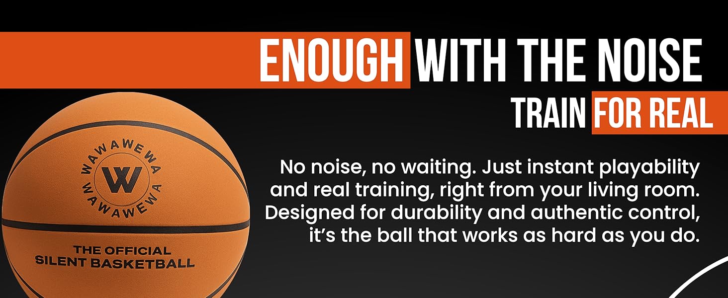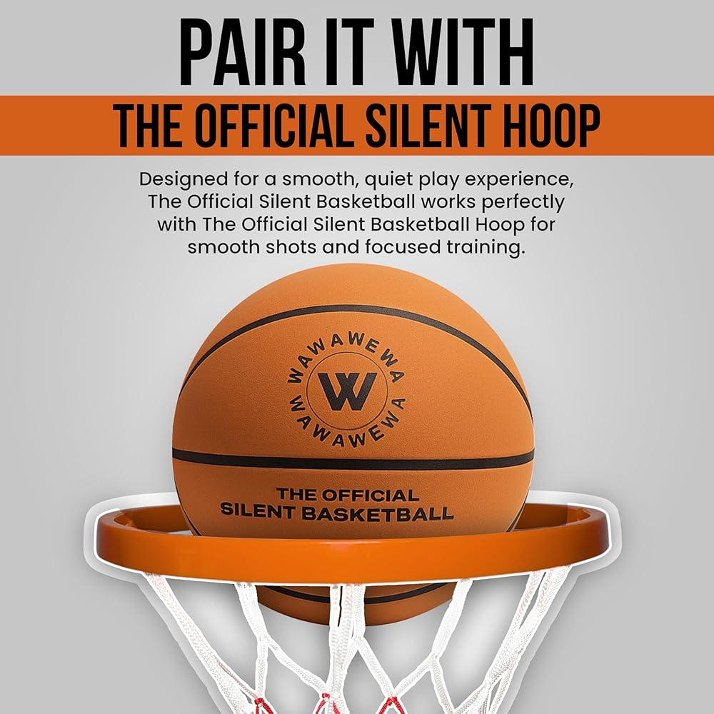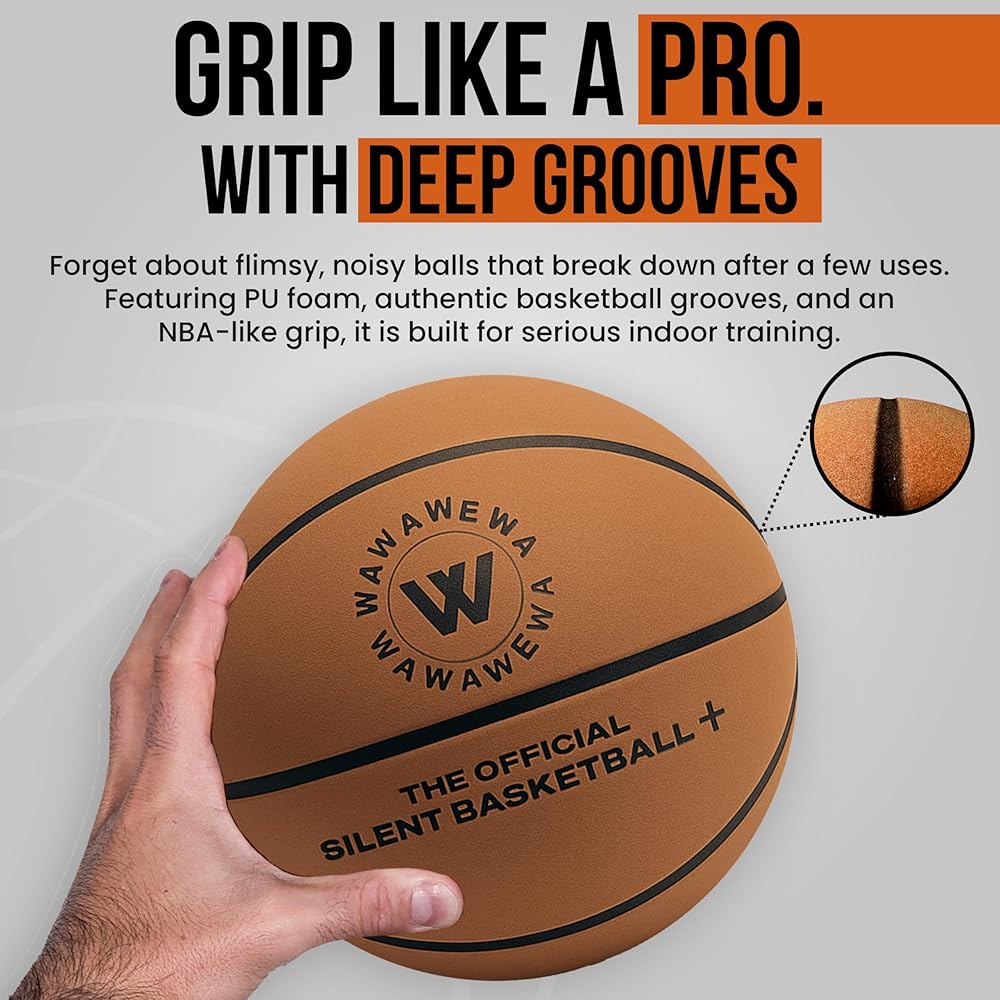 WAWAWEWA The Official Silent Basketball Size 7 (29.5") Uncompressed Fully Inflated – Ready to Play Indoor Basketball for Quiet Dribbling – Grooved Airless Indoor Training PU Foam Basket Ball All Ages