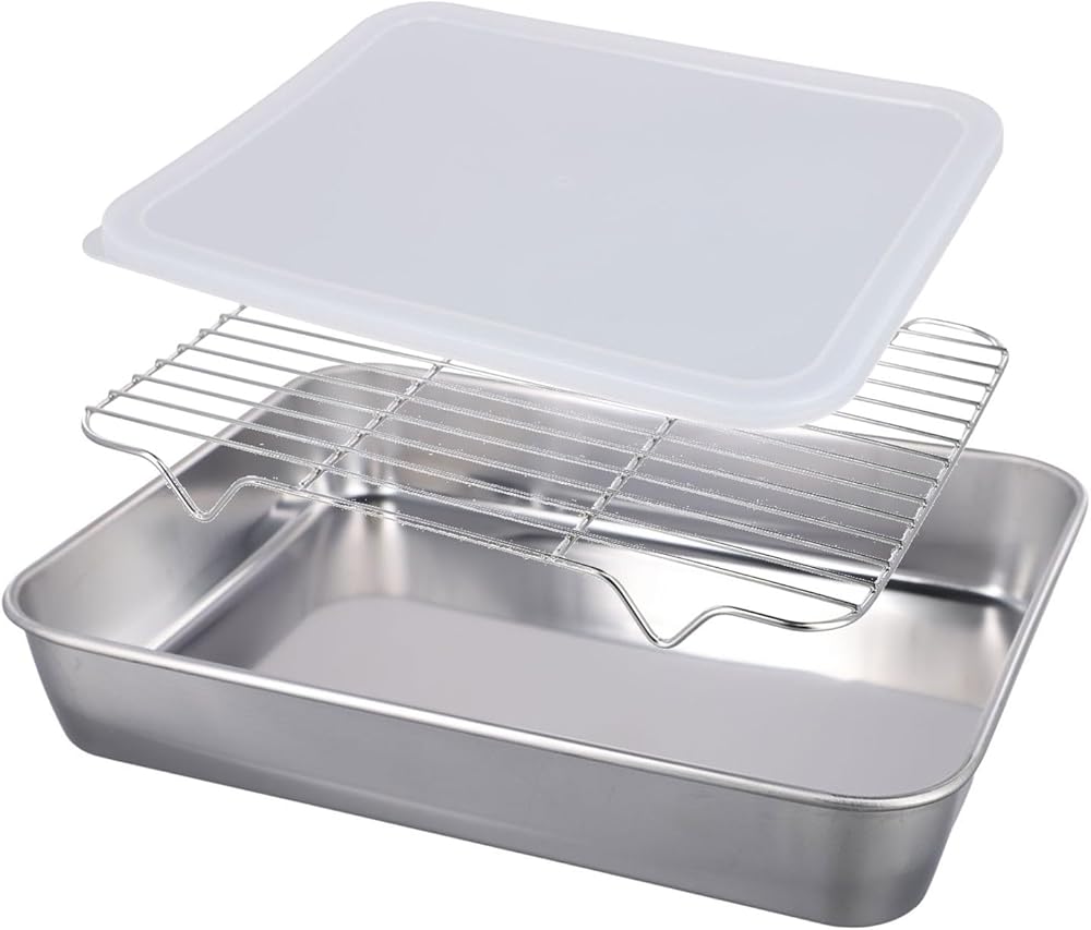 *Made of pure stainless steel: Our pan with grid rack is made of high-quality stainless, a safechoosefor your daily needs, and a great alternative to aluminum and non-stick coating pans.