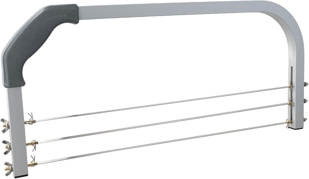 *Height Adjustable Cutting Wires: The cake cutter leveller features 3 cutting wires that are height adjustable, allowing for precise cuts at different heights.