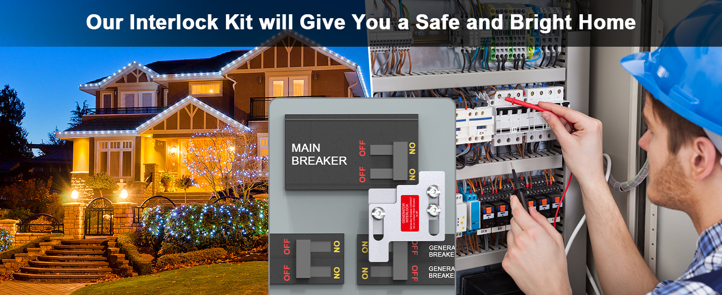 【Safety Generator Interlock kit】This kit avoids the inconveniences that an unexpected power outage can cause. It is used to direct generator power to any circuit within your home safely. It is truly a great way to safely connect up a generator while assuring that you have access to all of your home electrical appliances.