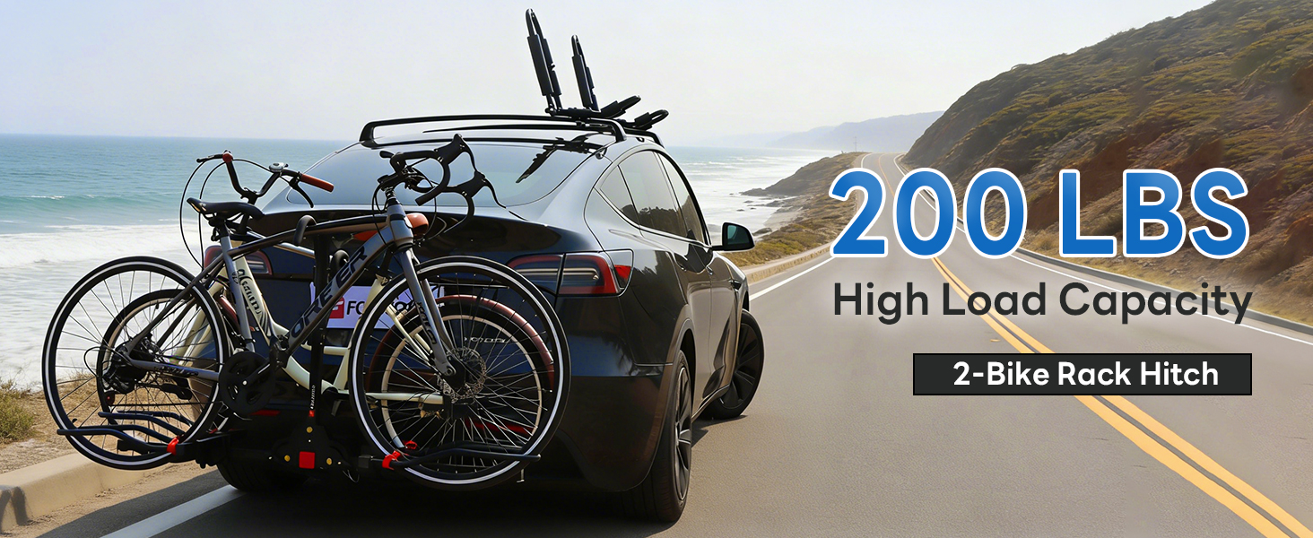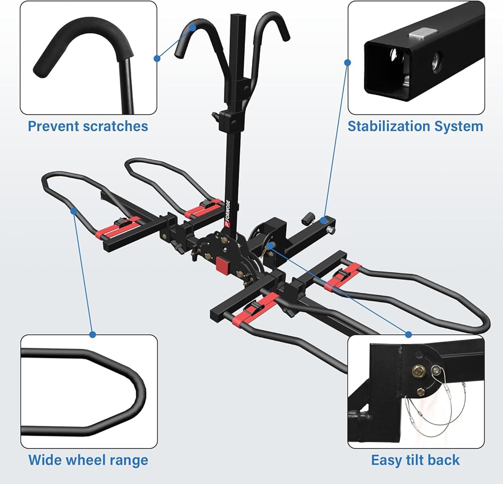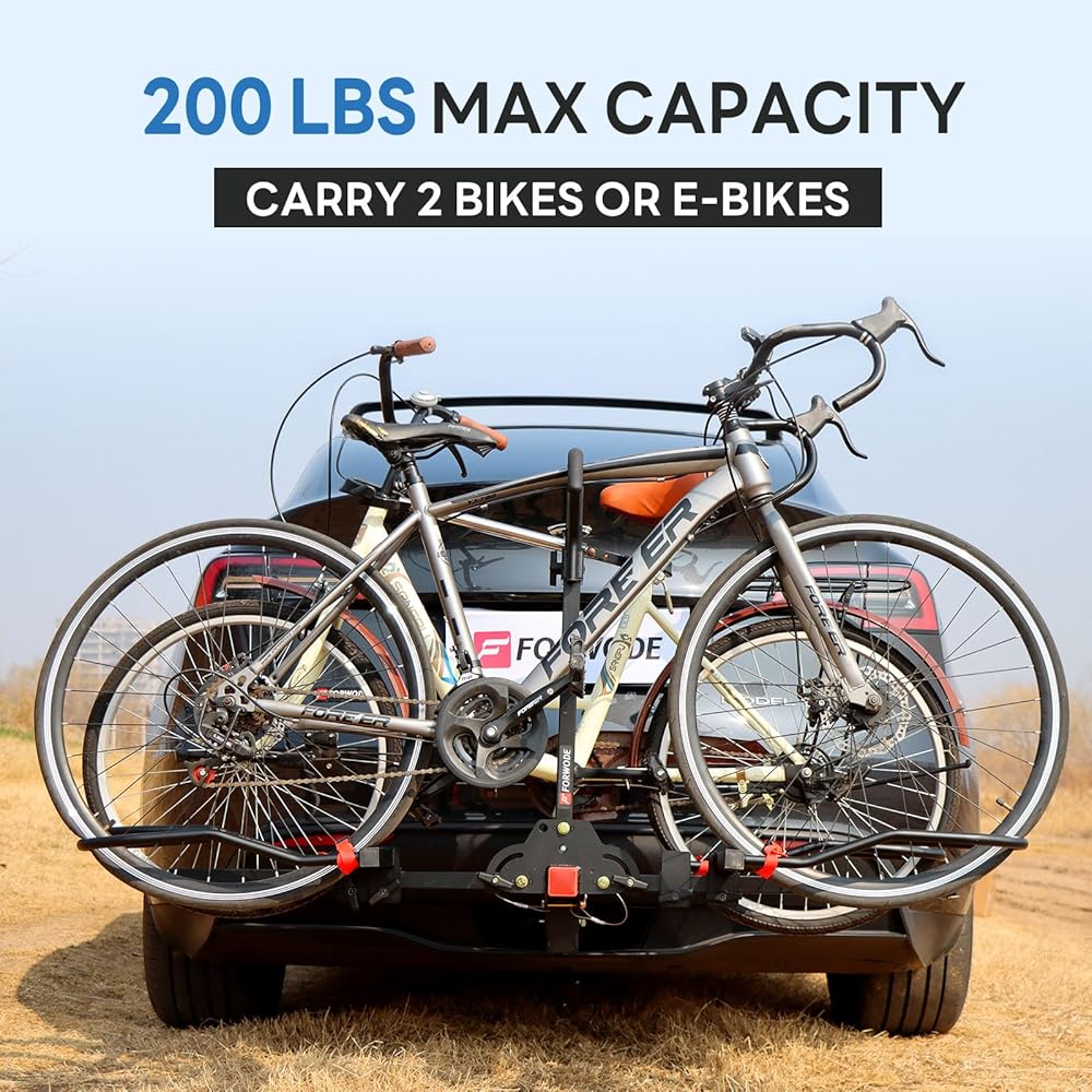 FORWODE Bike Rack Hitch for Car, 200 LB 2-Bike Racks with Hitch Lock, Wobble Free Smart Tilting Folding Hitch Mount Bike Rack for 2 Inch Receiver, Bike Carrier Fits Up to 5 Inch Fat Tire for Car