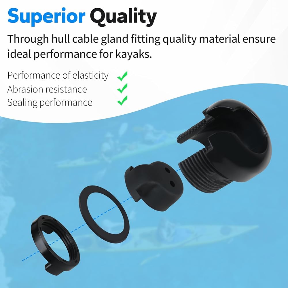 Through Hull Cable Gland Fitting: Dfnidy kayak cable gland kit comes with 2 base locking nuts and 6 different sizes of wire insert plugs. Wire insert plugs accommodates cables from 1/8" to 5/16" through the kayak hull