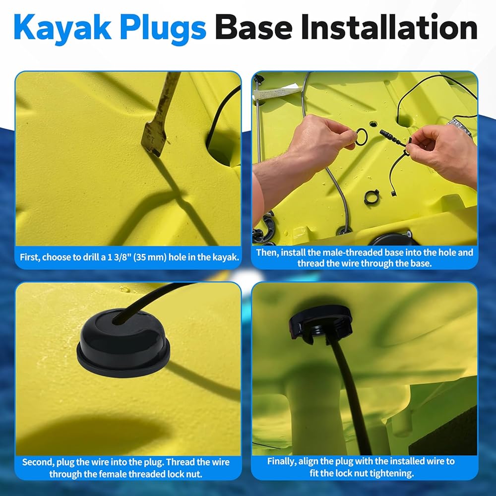 Kayak Wiring Plugs: The kayak gear water resistant fittings plugs allows you to hide the cable inside the hull, reducing deck clutter. Prevents snagging and tripping