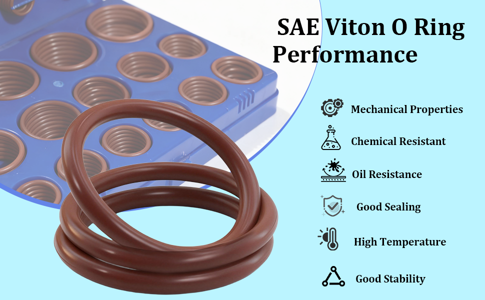 High Quality : FKM o ring kit made of brown fluorocarbon 75A durometer material, characterized by high temperature resistance, oil resistance, acid and alkali resistance. Working temperature range is from -15℉ (-26℃) to + 392℉ (+200℃). Keep excellent shape retention and ensures durable, leak-proof sealing performance.