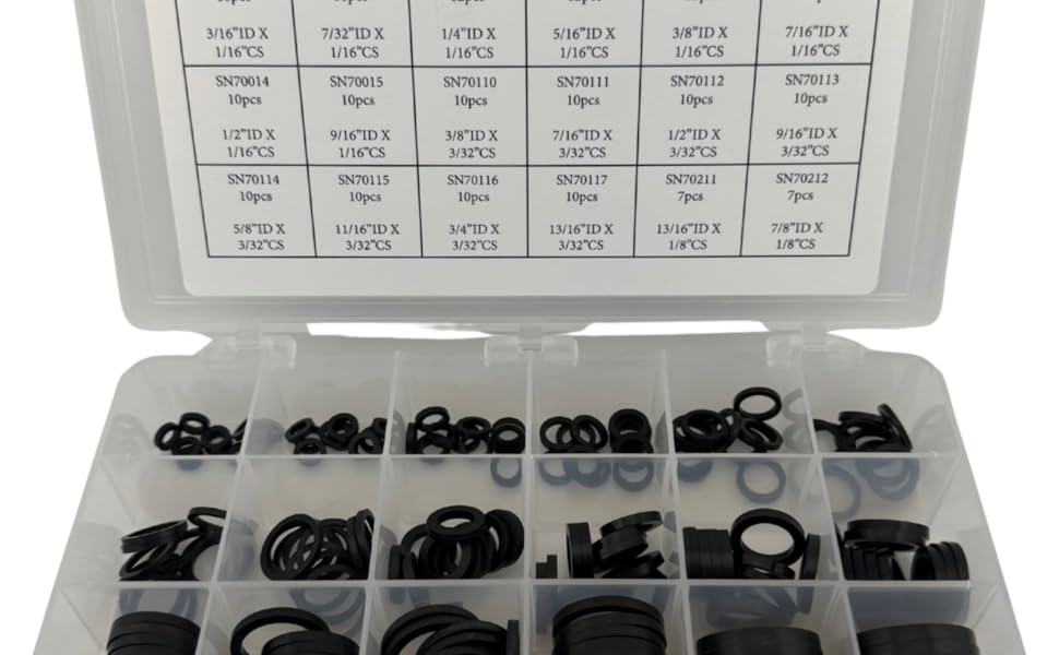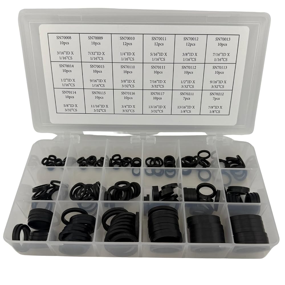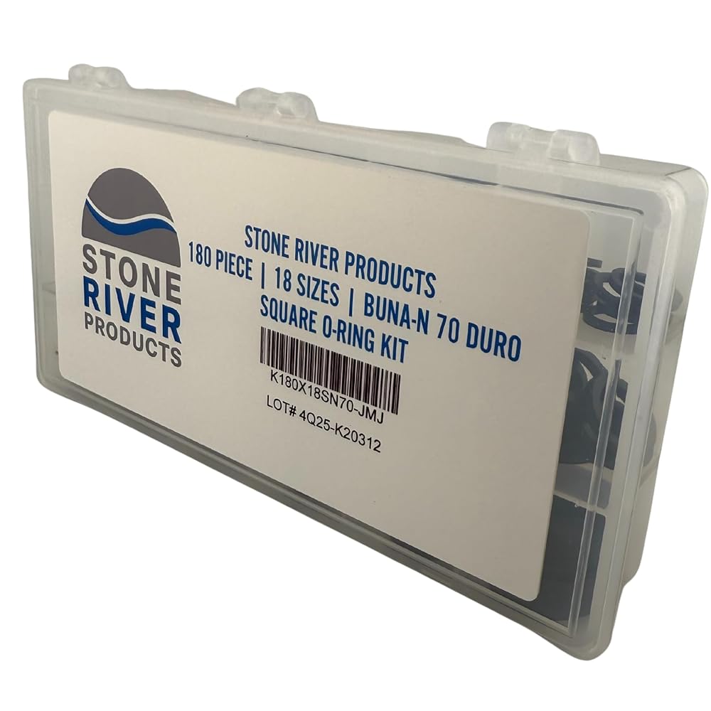 18 Popular Square O-Ring Sizes: This Stone River Products kit includes 180 square-profile O-rings across 18 commonly used sizes for fast, reliable sealing in maintenance and repair jobs.