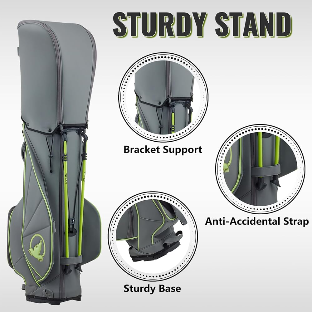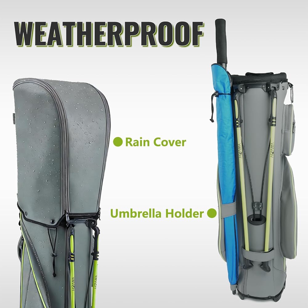 Multi-Functional: With 5 versatile pockets (balls/accessories) and a detachable rain cover, this golf stand bag for men ensures dry storage in wet conditions, making it ideal for backpack golf bags needing reliable gear protection