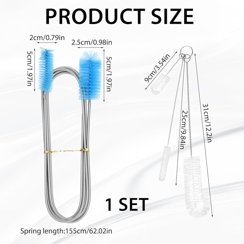 • Versatile for Multiple Uses: Perfect for homeowners and mechanics, this brush set is ideal for a range of applications, including sink drains, refrigerator coils, shower drains, plumbing maintenance, and even fish tanks. It works on PVC pipes, water filters, and aquarium tubing without scratching surfaces