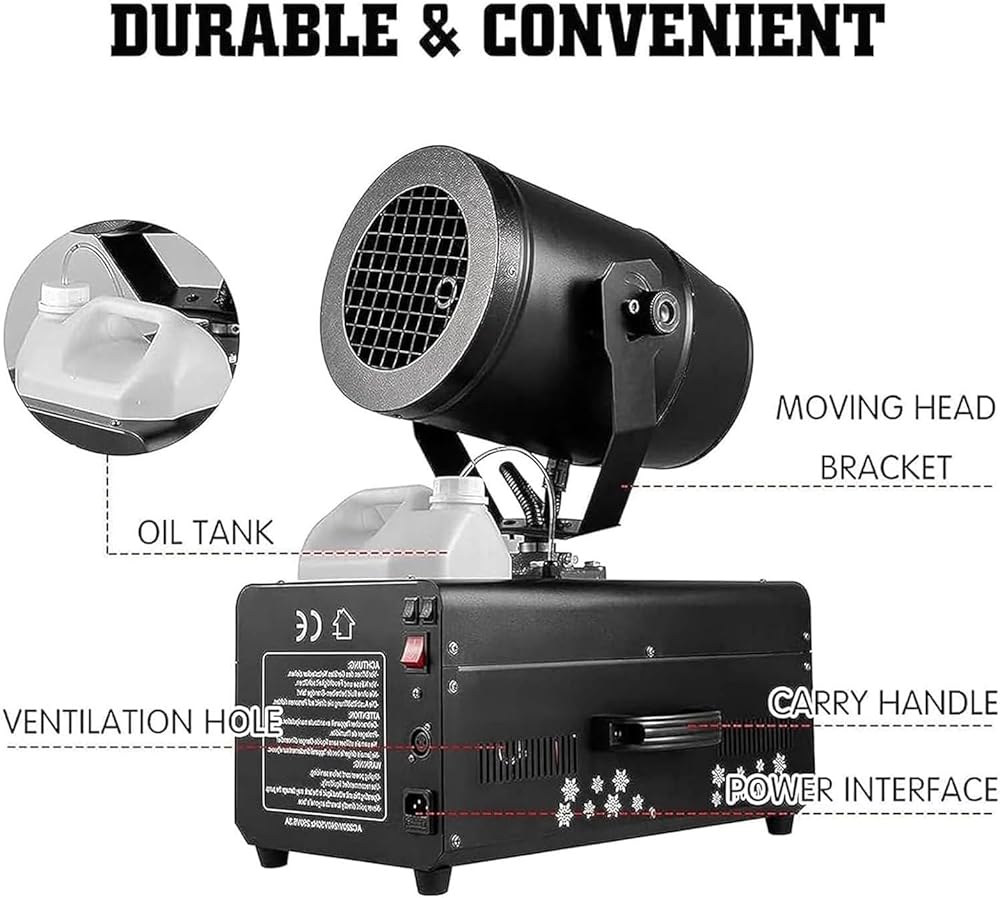 Create a Captivating Atmosphere: This 2000W Snowflake Maker is designed for optimal performance and even snow distribution, perfect for enhancing any indoor or outdoor event. Enjoy the charm of artificial snowflakes and elevate your holiday celebrations with this innovative Snow Machine. Ideal for parties, weddings, or festive decor.