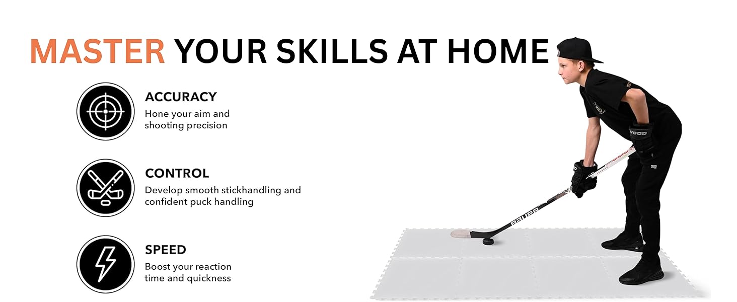 EXPANDABLE TRAINING ZONE: Easily add more tiles to create a larger hockey practice area. Perfect for dynamic shooting drills and wide-ranging maneuvers.