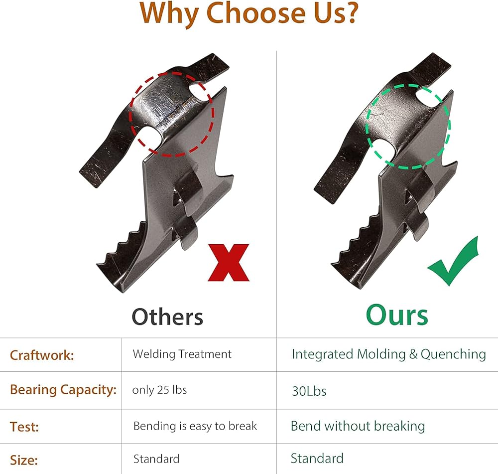 30 lbs Load Capacity: Brick Hooks for Hanging - the adopt of a unique quenching process enhenced the performance of the brick hooks thus a single brick wall clip can hold up to 30lbs. Hanging heavy items will require more brick hooks to support the weight