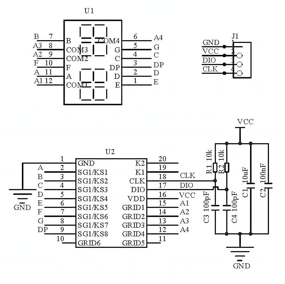 The driver IC is TM1637, only two signal lines can make MCU control four Digit 8-segment LED.