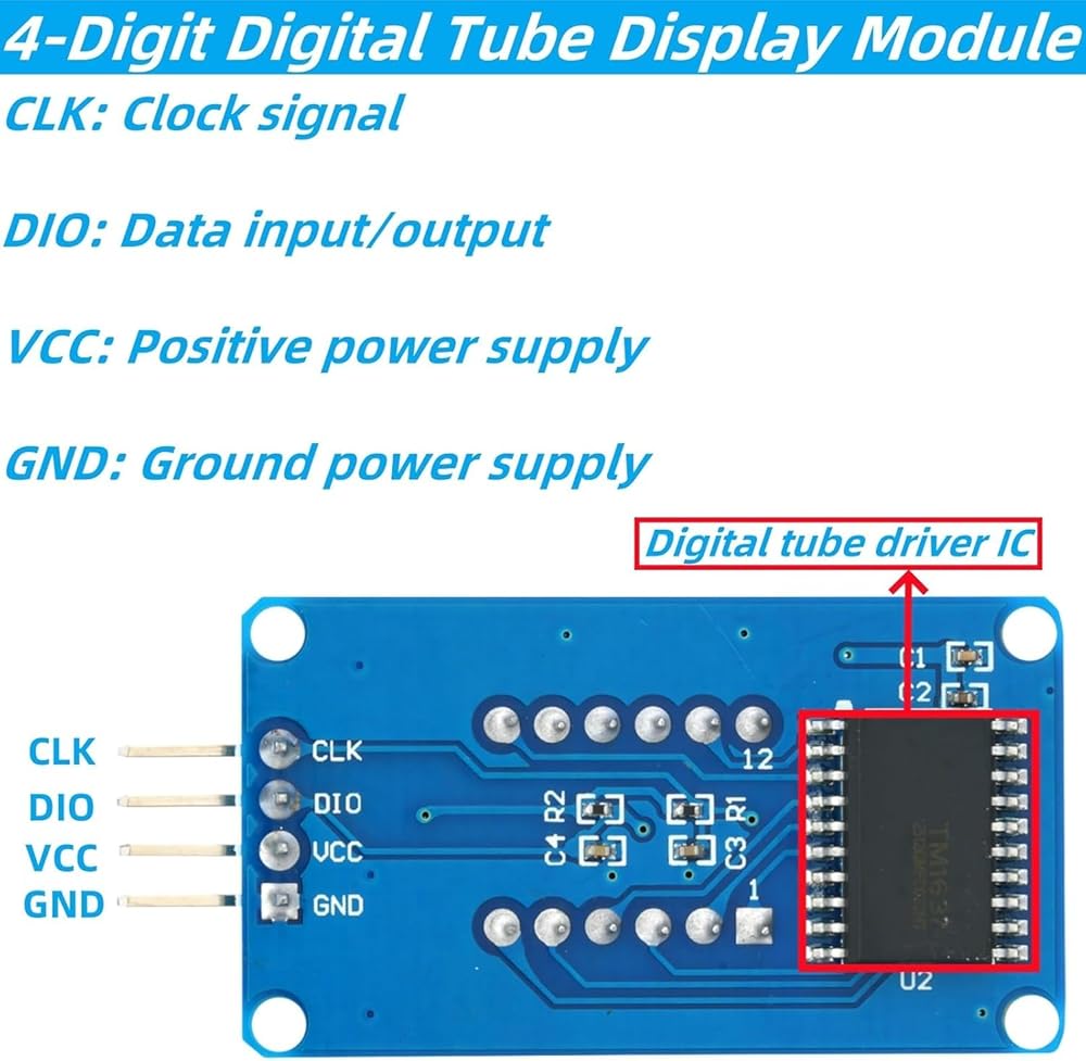 • 4-Digit Digital Tube Display Module: The Driver Ic Is Tm1637, Only Two Signal Lines Can Make Mcu Control Four Digit 8-Segment Led. Can Be Used To Display Decimal, Letters And So On