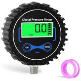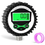 0-200PSI Digital Air Pressure Gauge, 1/4'' NPT Lower Mount and Rubber Protector, Accuracy 1%, Resolution 0.1psi, for Tires, Pressure Containers & Automation Equipment