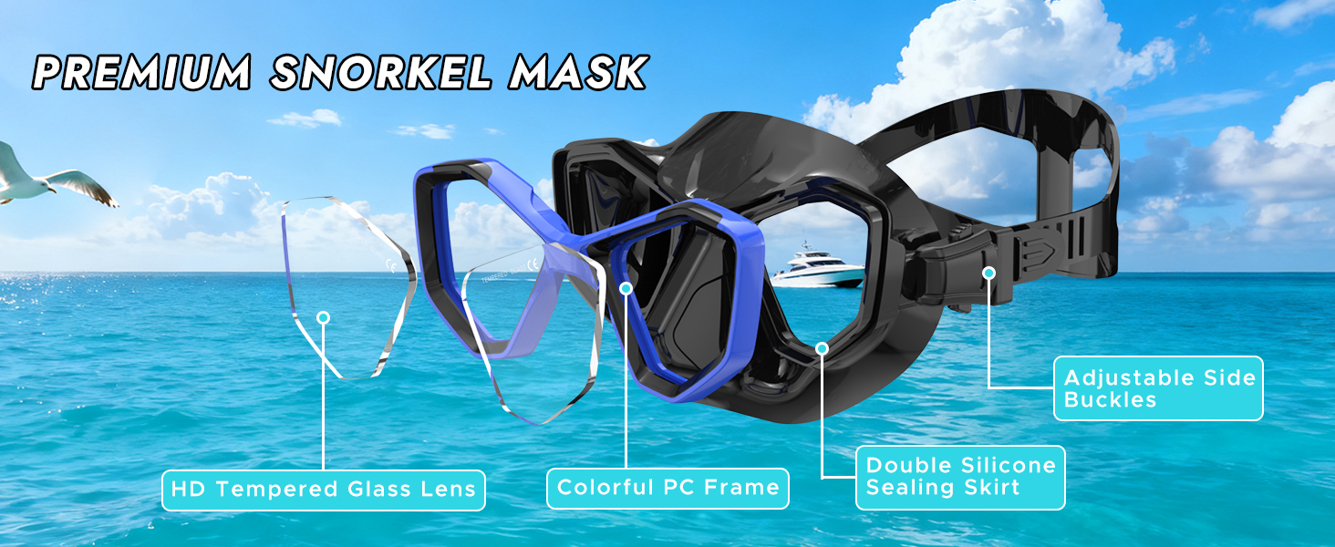 Tempered-Glass Lens for Safety】Keary diving mask chooses the ultra clear thickened tempered glass to withstand deep water pressure for all types of diving or snorkel. Scratching resist lens provides the clearer view under water, especially for beginners. But please Don't toss the swim goggles down on the tile floor, Don't jump into water with the mask, Don't scratch the glass with sharp objects.