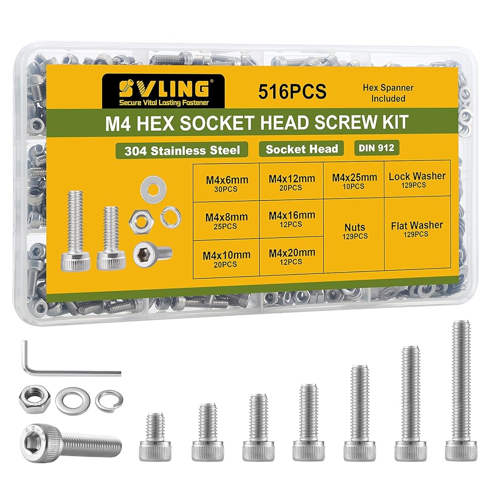 304 Stainless Steel: This M3 hex socket head cap screws assortment kit are made of 304 stainless steel, which offers exceptional hardness, superior strength, and enhanced rust resistance, ensuring long-term durability and reliable performance in outdoor applications