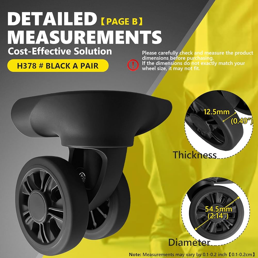 It is crucial to carefully confirm the dimensions and style of the replaceable wheels for your luggage before making a purchase.