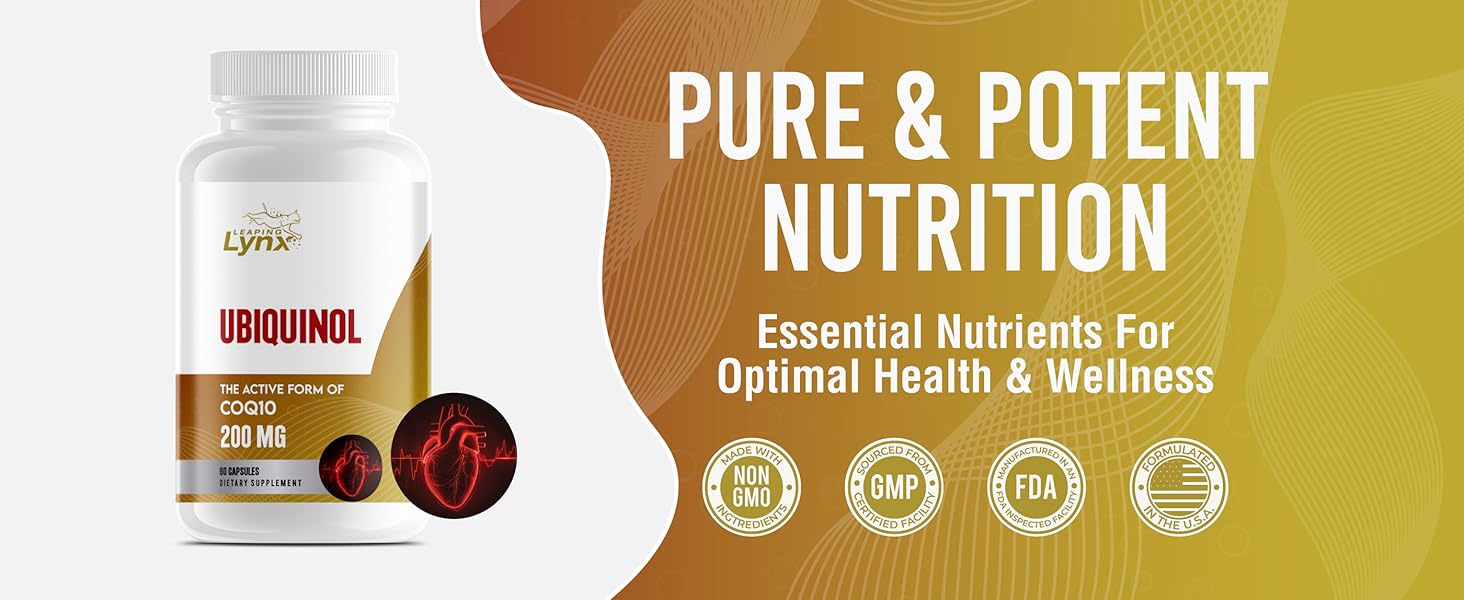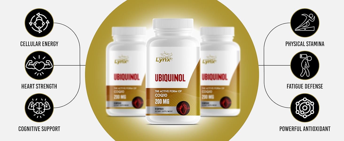 ✅ 200 mg Ubiquinol (Active CoQ10) per Capsule – The clinically active, high-absorption form of Coenzyme Q10 designed for superior bioavailability and immediate cellular energy use.