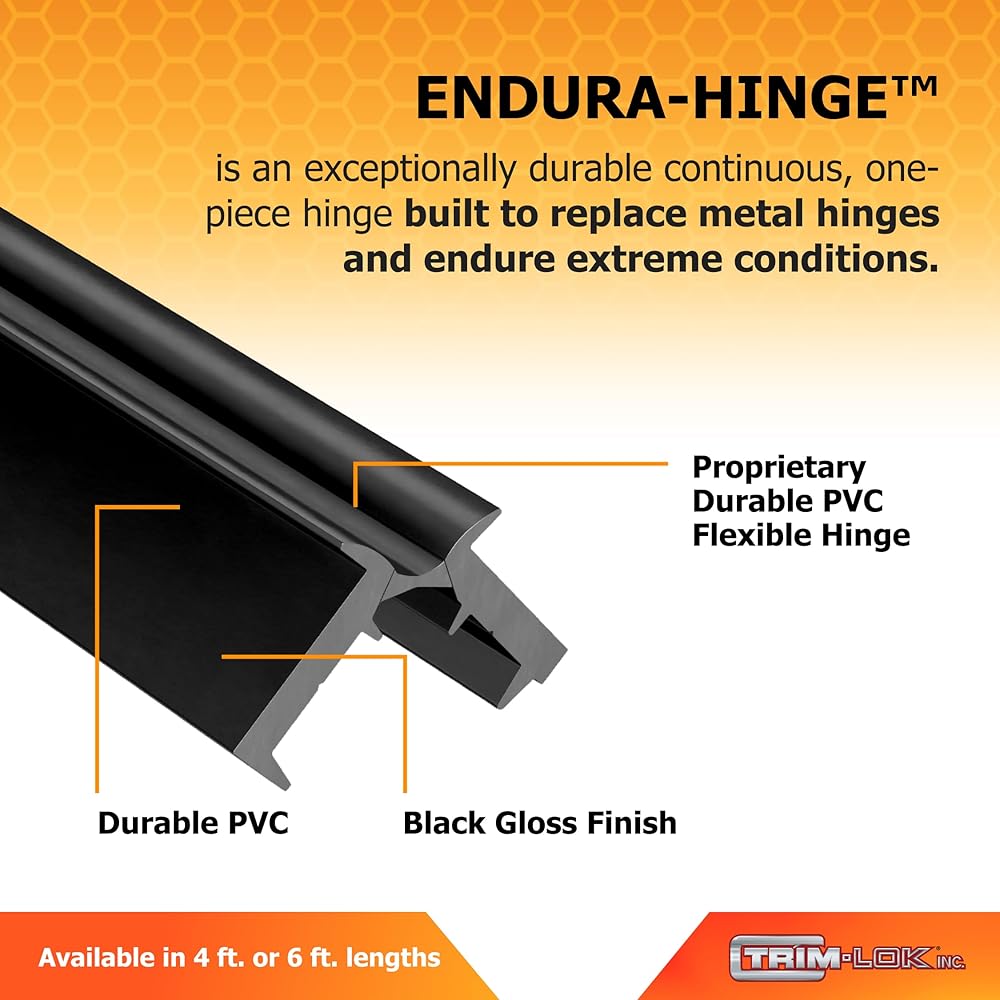 TRIM-LOK Endura-Hinge, 4-Foot Section, Durable PVC Continuous Hinge, Resists Rust, Corrosion & UV Damage, Up to 90,000 Cycles of Low-Maintenance Outdoor Use, Ideal for Truck Cap Toppers & More