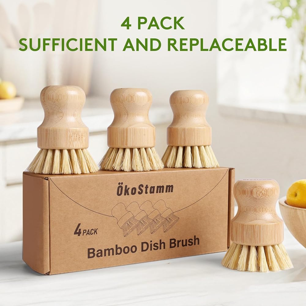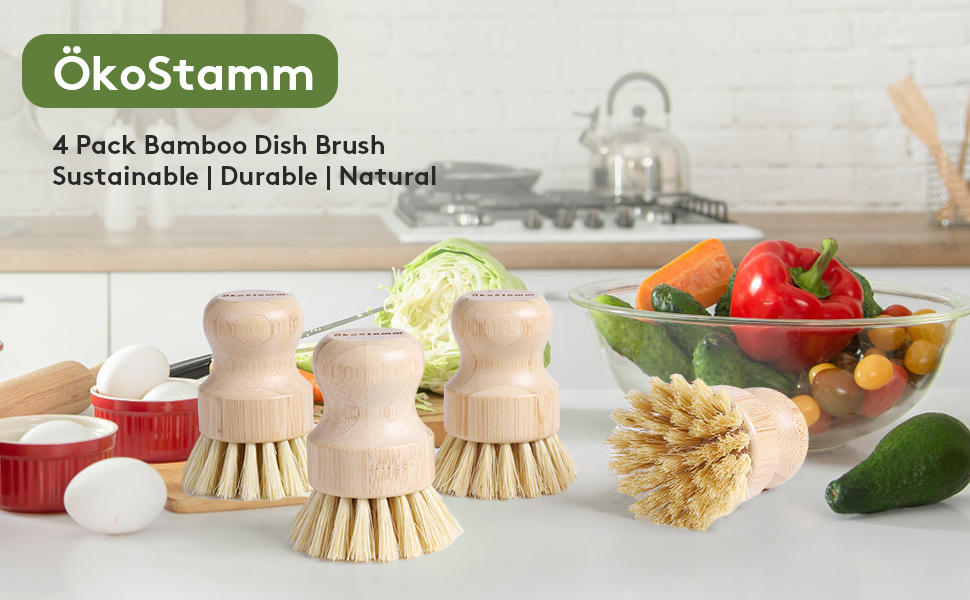 4 PACK DISH SCRUBBER BRUSH SET:The bamboo dish brush set includes four natural dish scrubber, the quantity is sufficient to meet the daily use and replacement