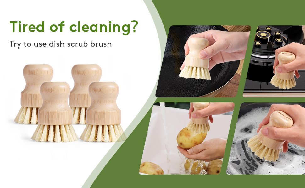 VERSATILE USE: Natural cleaning brushes are good for cleaning pots, dishes, sinks, vegetables, tiles, etc., and can complete most household cleaning tasks