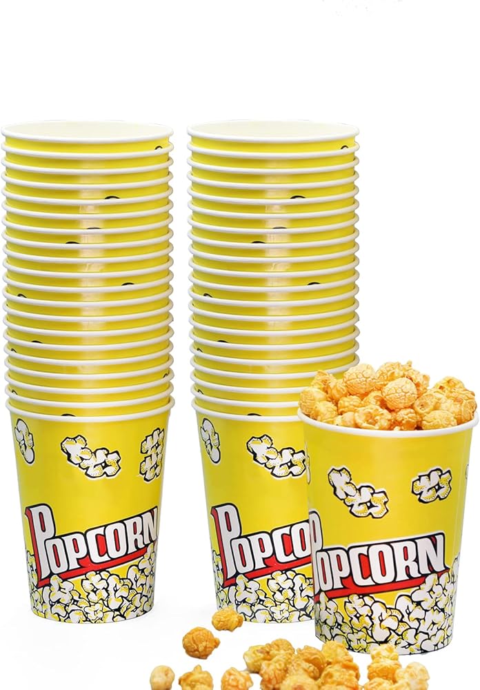 VIKEER 46 Oz Popcorn Cups (40 Pack) Grease Resistant Popcorn Buckets Small Popcorn Bowl Popcorn Holders for Family Movie Night, Theme Party, Thanksgiving, Christmas, Birthday Party