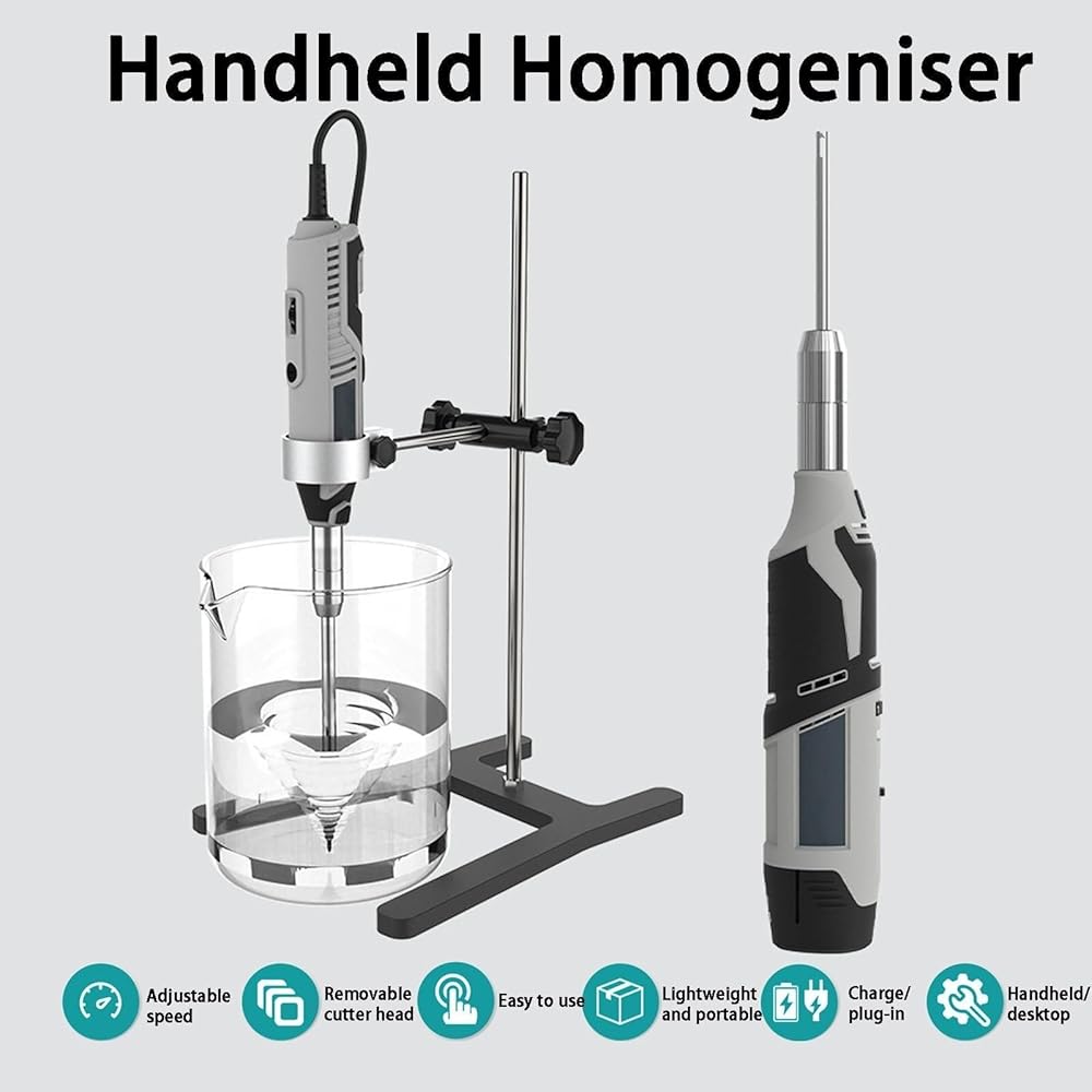 • Lightweight】The handheld high-speed homogenizer has good homogenization effect and long service life. The handheld design is flexible to ope-rate and meets your needs for mobile experiments. You can work for a long time without getting tired.