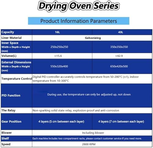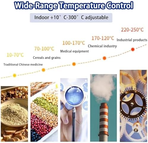 【Digital Air Drying Oven】 Experience precise temperature control from 50 to 280 °C with our Intelligent PID Temperature Controller. This advanced Microcomputer Temperature Control Instrument features Timer, Alarm, and Temperature Calibration functions. All essential data is displayed clearly on the screen, making it easy to monitor your drying process effectively. Perfect for various drying applications!