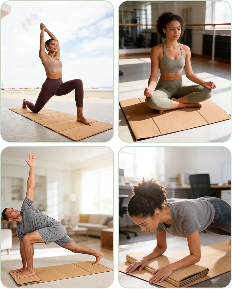 【Natural Cork Surface + Eco-Friendly POE】Made with a natural cork surface and upgraded eco-friendly POE material, this exercise mat is odorless, non-toxic, waterproof, and more skin-friendly than traditional PVC, EVA, TPE, or NBR mats. A safer, more sustainable choice for daily yoga practice