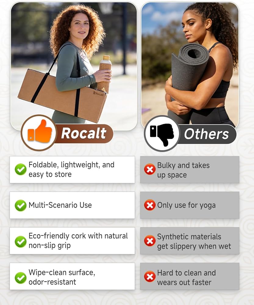【Double-Sided Non-Slip for Stable Practice】The cork top layer provides a comfortable grip that improves with moisture, making it especially suitable for hot or heated yoga. The textured, corrugated base delivers strong traction on wood floors, tile, marble, or carpet to keep the mat securely in place