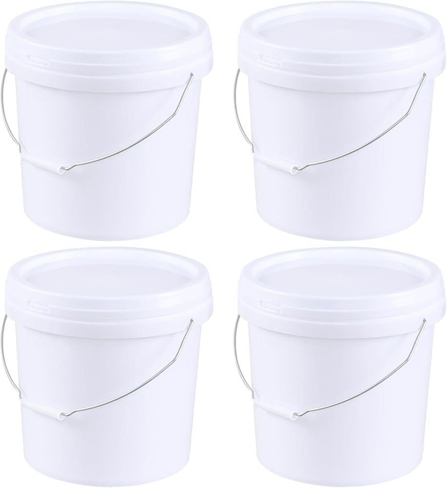 4-Pack White 4 Gallon Plastic Bucket with Sealed Lid